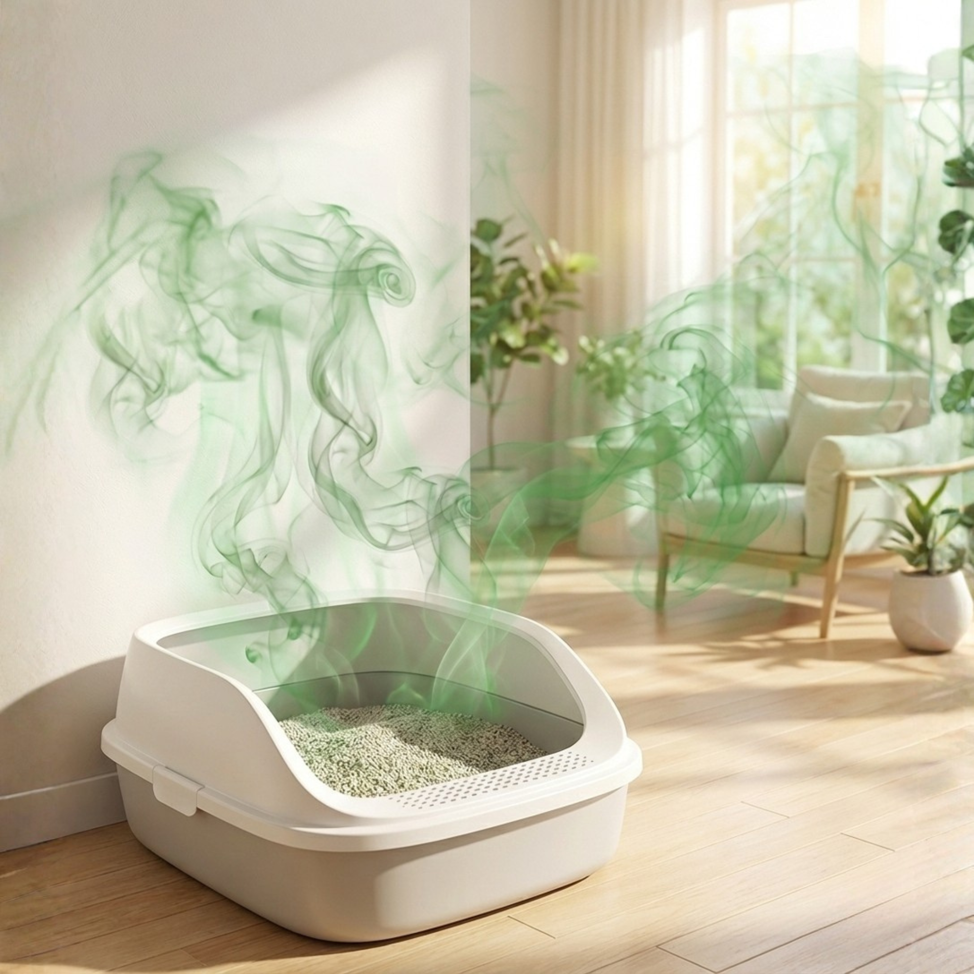 Même avec une litière propre, les odeurs restent dans l’air autour du bac.